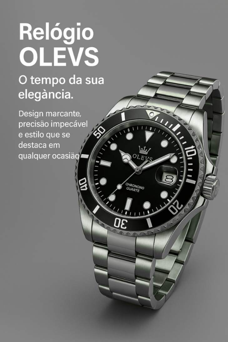 Apresentamos o Relógio Olevs, a escolha perfeita para quem busca unir estilo, sofisticação e funcionalidade em um único acessório. Com interface moderna e acabamento refinado, ele é ideal para compor tanto looks de negócios quanto visuais fashion e esportivos. Seu formato redondo e o design imponente com 40mm de diâmetro destacam a presença marcante no pulso, transmitindo elegância e confiança. O relógio é equipado com movimento de quartzo de alta precisão, garantindo pontualidade em qualquer ocasião. Além disso, conta com funções de cronógrafo, calendário e ponteiros luminosos, que proporcionam praticidade e visibilidade mesmo em ambientes de baixa luz. Sua resistência à água de 30m a 50m torna-o versátil e confiável para o uso diário. Construído em aço inoxidável resistente com detalhes sofisticados de alta qualidade, esse modelo oferece durabilidade e um visual premium. O vidro Hardlex reforça sua resistência contra riscos, assegurando que o brilho e a beleza do relógio permaneçam impecáveis por muito mais tempo.